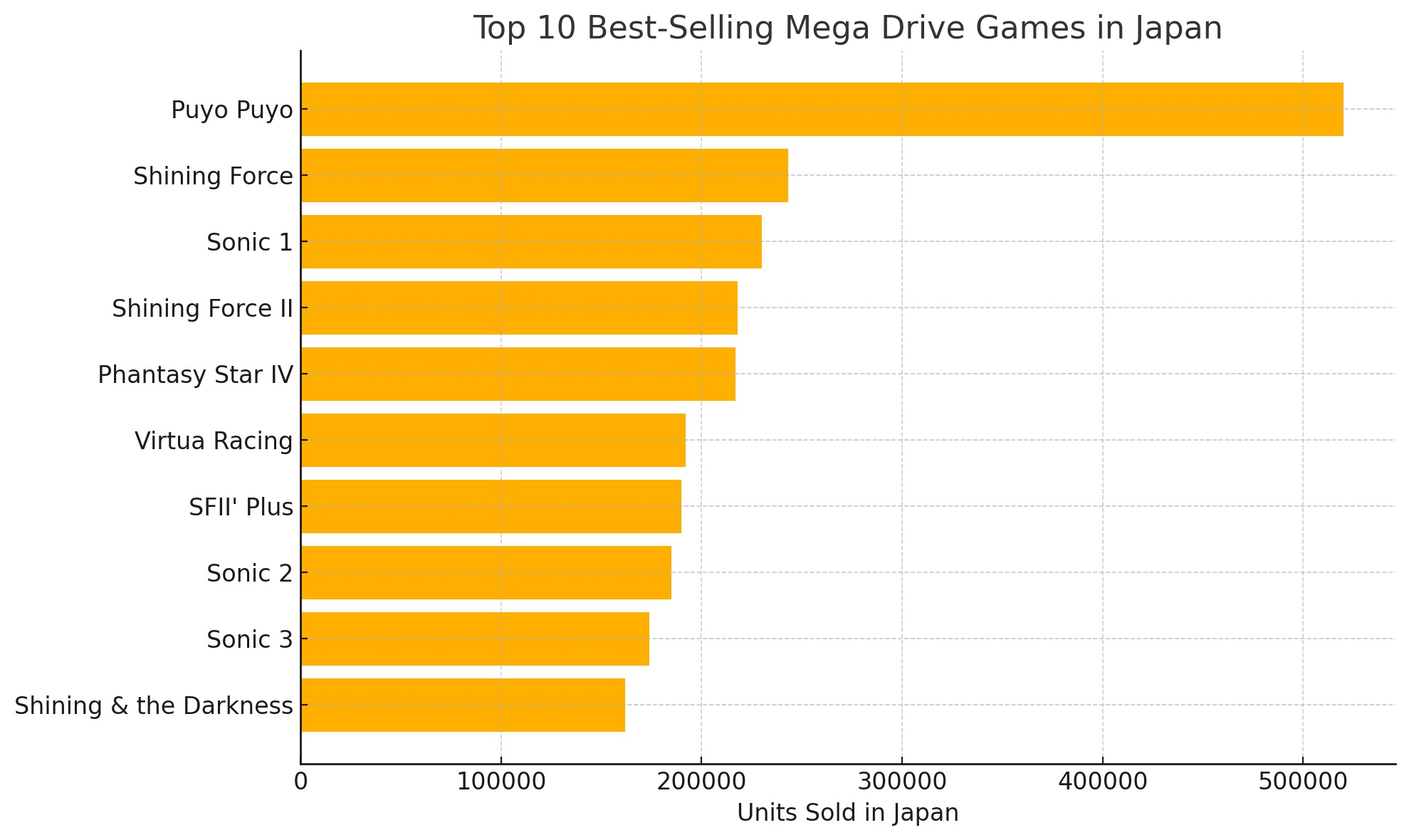 Surprisingly, Sonic wasn’t nearly as dominant in Japan. Instead, Japanese players flocked to puzzle games and tactical RPGs. The #1 best-seller in Japan? Not a blue blur — but a bunch of falling blobs.