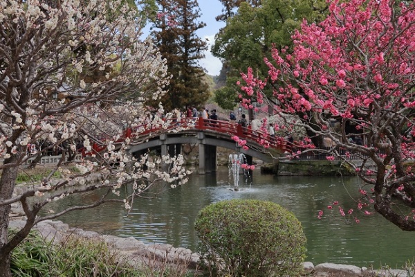 This sacred Shinto site is famous for its centuries-old plum trees. Plum blossoms here bloom as early as mid-February, drawing students and travelers alike.